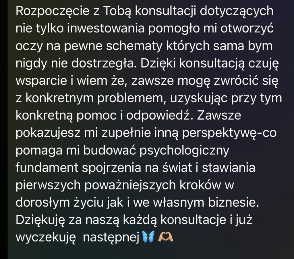 Pomagałam radzić sobie z presją, stresem i podejmowaniem decyzji w wymagającym środowisku finansowym.
